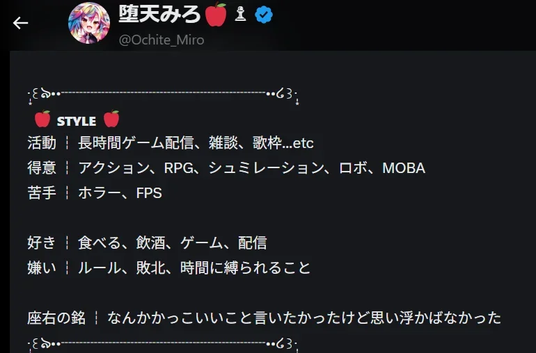 また、堕天みろは得意なゲームジャンルとして「アクション」や「ロボ」を挙げていますが、これもアーカイブに残っている配信内容とぴったり一致しているんです。